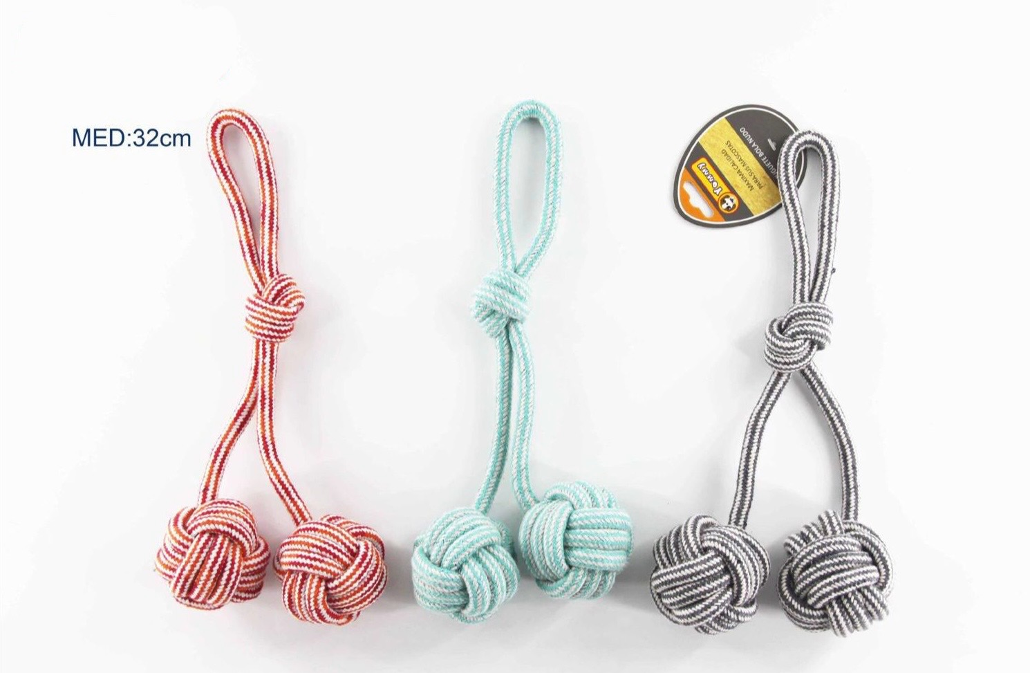 Juguete de cuerda doble con nudo y dos pelotas de cuerda.
